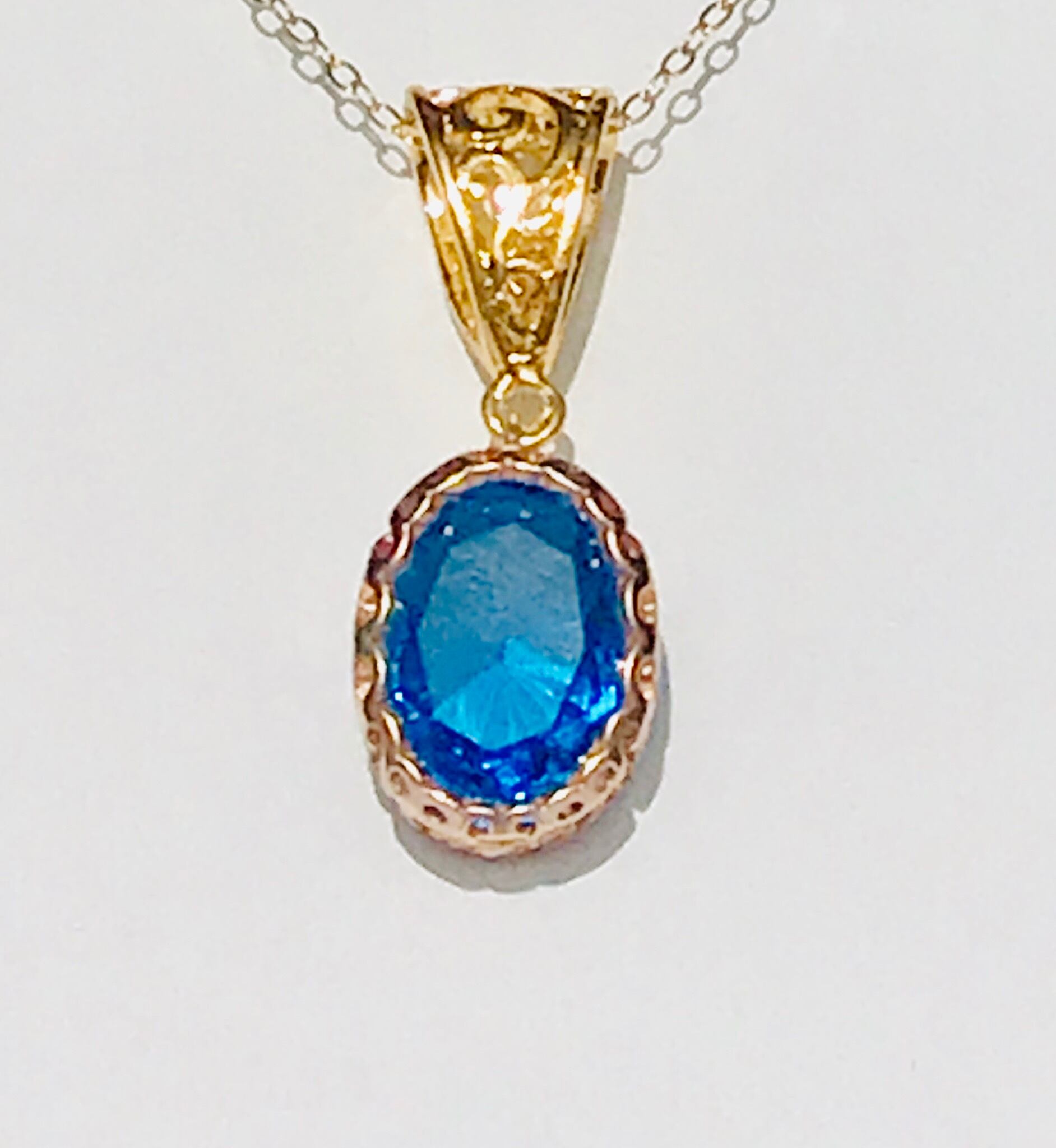 アンダラクリスタル ジュエリーカット ペンダント エレクトッリックブルー オーバール
