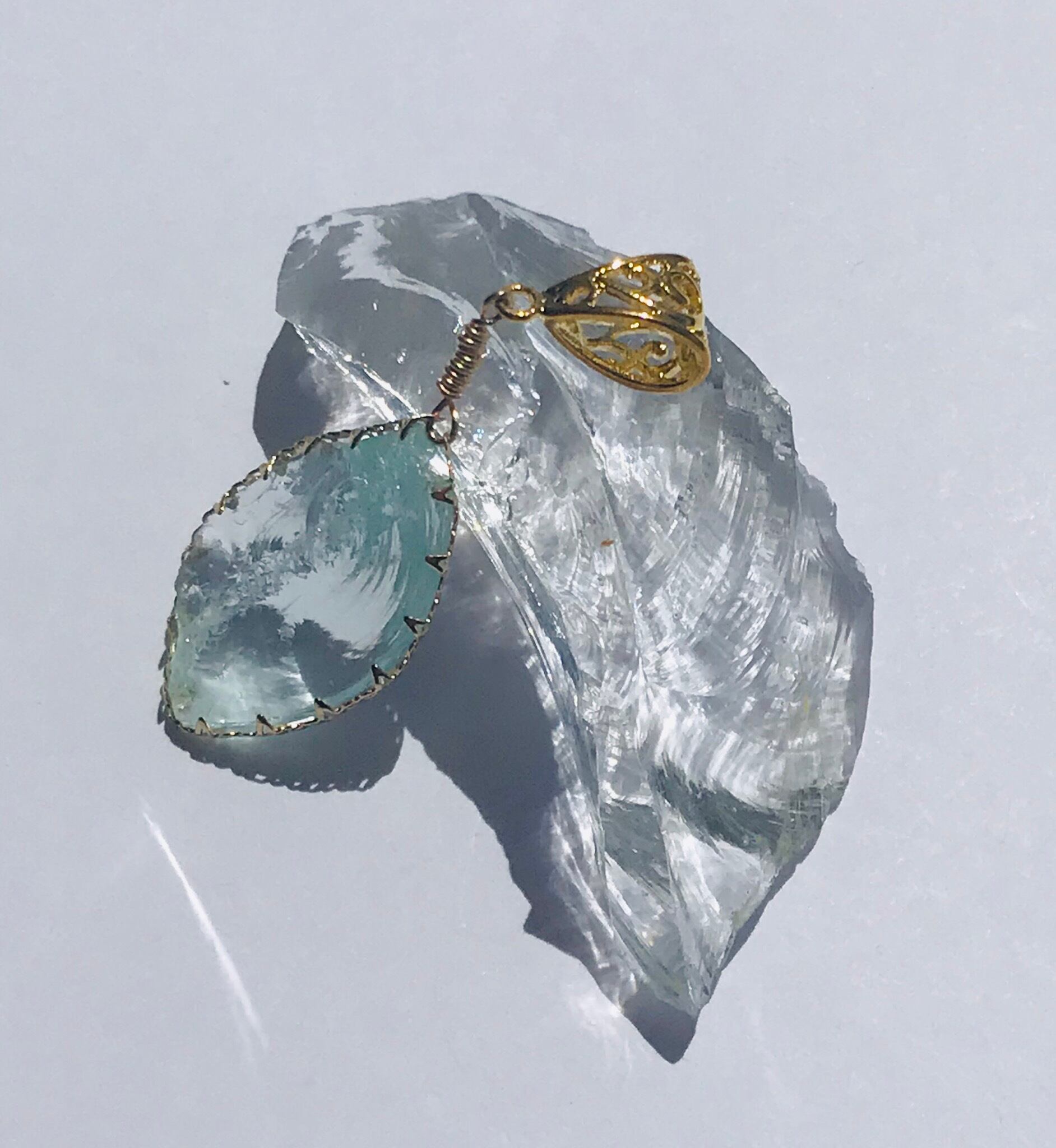 アンダラクリスタル 14kg ワイヤーアクセサリー ペンダント シアンエンジェルズ ドロップ